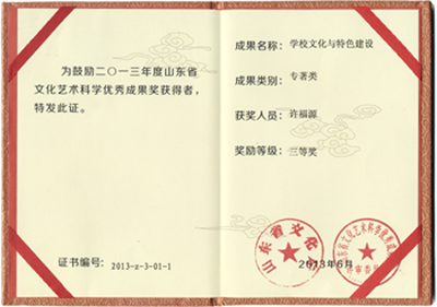 热烈祝贺《学校文化与特色建设》被评为星空体育(中国)官方网站-STAR SPORTS文化艺术科学优秀成果三等奖